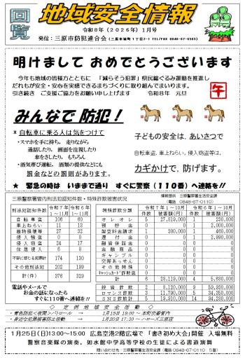 地域安全活動公開日:2026年01月05日地域安全情報(令和8年1月号)明けましておめでとうございます