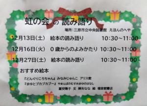 イベント公開日:2025年12月04日絵本の読み語り(12月)開催日:毎月第2・第4土曜日