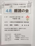 公開日:2026年04月17日保健・医療・福祉の増進大人向け朗読の会令和8年4月15日(水曜日)